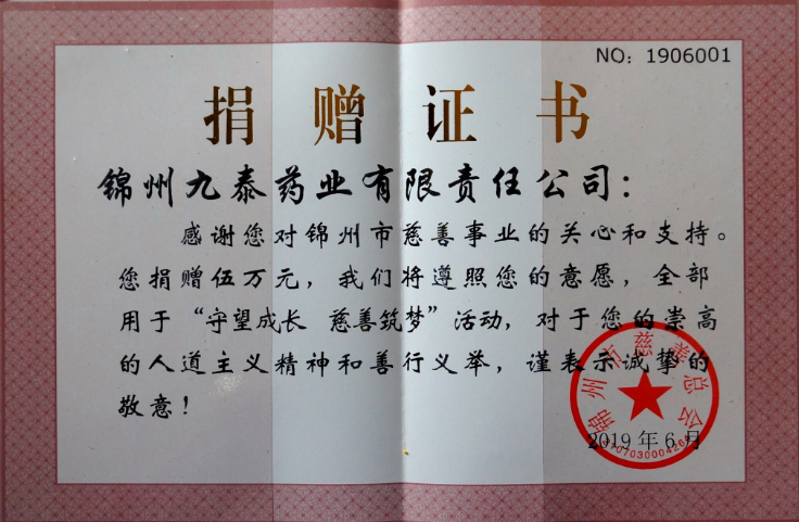 錦州市慈善總會(huì)授予公司“守望成長,慈善筑夢(mèng)”活動(dòng)優(yōu)秀慈善贊助單位。